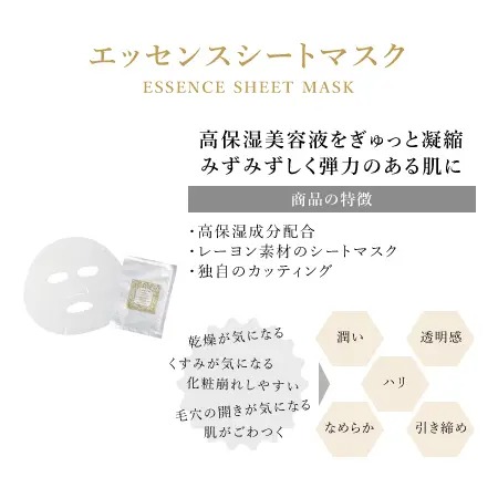 1枚のマスクに高濃度美容液をたっぷり配合。密着性の高いシートに閉じ込め、肌に弾力を持たせます。