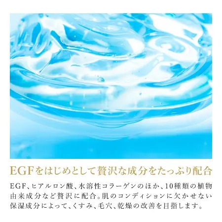 EGF、ヒアルロン酸、水溶性コラーゲン配合